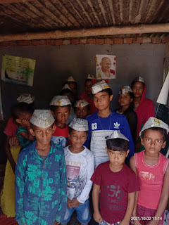 Today in Apna Skool ( Seasonal Program In Bihar) children celebrated Gandhi Jayanti, children were told about Lal Bahadur Shastri and Mahatma Gandhi, children were asked to follow the path of their ideas and thoughts, on the occasion of Gandhi Jayanti, children presented a tableau of Gandhiji in the village. Removed. The children of Apna School and Government School were walking together, chanting Gandhiji's poetry, his thoughts, and slogans. Neeraj, who was studying in the 5th standard of his school, posed as Gandhiji and the children wore Gandhiji's cap and said that we will always try to follow the path shown by him.